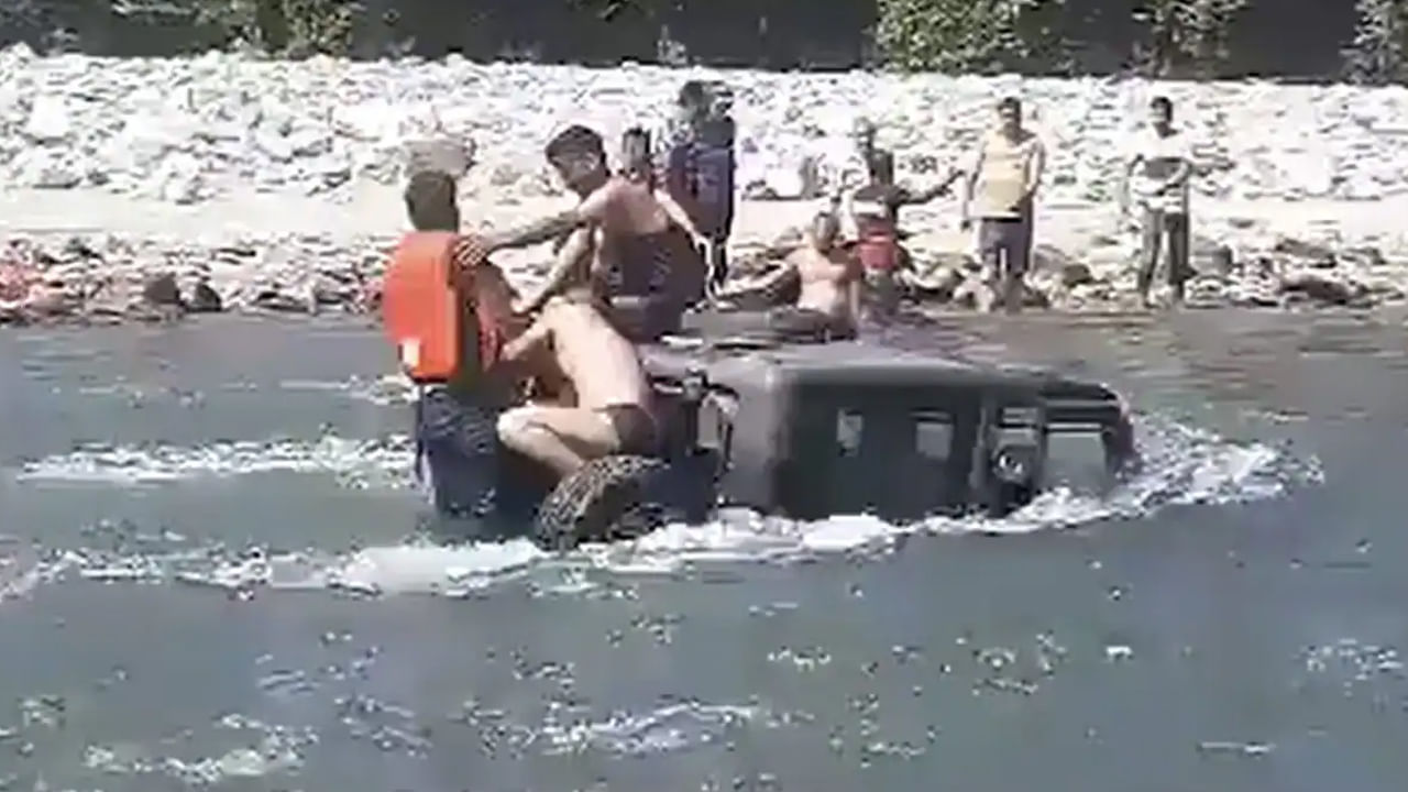 Thar Car in River: ఇటీవల కురిసిన భారీ వర్షాలకు ఉత్తరాఖండ్ లో నదులు ఉద్ధృతంగా ప్రవహిస్తున్నాయి. ఈ నేపథ్యంలో అల్మోరాలోని రామ్గంగా నదిని కొందరు యువకులు తమ కారులో ప్రయాణిస్తూ దాటాలనుకున్నారు. అది కాస్తా బెడిసి కొట్టడంతో ప్రాణాల మీదకు తెచ్చుకున్నారు. ఢిల్లీ లోని ఎన్సీఆర్ ప్రాంతానికి చెందిన ముగ్గురు యువకులు ఉత్తరాఖండ్ వెళ్లారు. మహీంద్రా థార్ వాహనంలో ప్రయాణిస్తూ ఉద్ధృతంగా ప్రవహిస్తున్న నదిని దాటేందుకు యత్నించారు. ఇటీవల కురిసిన భారీ వర్షాలకు నదిలో నీటి మట్టం బాగా పెరిగి ఉధృతంగా ప్రవహిస్తోంది. ఈ క్రమంలో వారి వాహనం మధ్యలోనే నిలిచిపోయింది.
