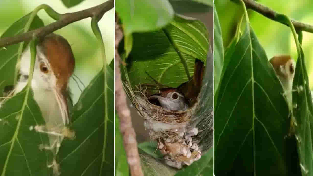 Viral Video: ఏదైనా వీడియో వైరల్ కావాలంటే అది సోషల్ మీడియా అని చెప్పకతప్పదు. సోషల్ మీడియాలో ప్రతి రోజు ఎన్నో విచిత్రాలు కనిపిస్తుంటాయి. ఇక ఒక పక్షి తన కోసం, తన పిల్లల కోసం గూడును ఏర్పాటు చేసుకోవడం చూసి ఉంటారు. కానీ అది గూడు కట్టేటప్పుడు ఎలా కడుతుందో చూశారా..? ఇది చూస్తే మీరే ఆశ్చర్యపోతారు. పక్షి తన కోసం గూడుకట్టుకోవడం అద్భుతమనే చెప్పాలి. పక్షి గూడును ఆకులతో తయారు చేయడం, అది కూడా ముక్కుతో ఏర్పాటు చేయడం అందరిని ఆశ్చర్యం కలిగిస్తోంది. ముక్కు సహాయంతో గూడు ఎలా తయారు చేస్తుందని ఈ వీడియో చూసిన నెటిజన్లను ఆలోచనలో పడేసింది.’వార్బ్లర్ ఫ్యామిలీ’లో చేర్చబడిన ఈ పక్షి పేరు టేలర్బర్డ్. ఆకులను కుట్టడం ద్వారా తన గూడును చాలా నైపుణ్యంతో నిర్మిస్తుంది.