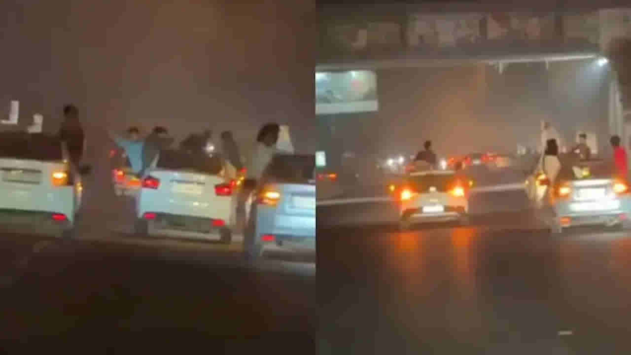 సోషల్ మీడియా ప్లాట్ఫామ్ Xలో వెలుగులోకి వచ్చిన ఈ వీడియోలో, అనేక కార్లు రింగ్ రోడ్డుపై వేగంగా వెళ్తూ, ట్రాఫిక్లో అటూ ఇటూ దూసుకుపోవడం కనిపించింది. కొన్ని వాహనాల్లోని ప్రయాణికులు సన్రూఫ్లు కారు విండోల నుండి బయటకు నిలబడి అరుస్తూ, ఇతర వాహనదారుల పక్కనుంచి వేగంగా దూసుకుపోవడం కనిపించింది.