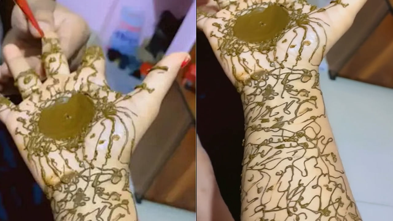 వీడియో సోషల్ మీడియాలో వైరల్ భర్తకు మెహందీ డిజైన్ గురించి అవగాహన లేదు.. అయితే తన భార్య ఆనందం కోసం అతను ధైర్యం చేసి ఆమె చేతిలోని మెహందీ కోన్ను తీసుకున్నాడు. అతను మెహందీని వేయడానికి ప్రయత్నించడం ఇదే మొదటిసారి. అయితే అతను చేసిన కృషి నిజంగా ప్రశంసనీయం. ఈ ఫన్నీ సంఘటన వీడియో ఇప్పుడు సోషల్ మీడియాలో వైరల్ అవుతోంది. ఇందులో భార్య తన చేతిపై మెహందీని చూపిస్తున్నట్లు చూడవచ్చు, ఇది ఆమె భర్తకి మాత్రమే వచ్చిన ప్రత్యేకమైన ‘కళ’కు ఫలితం.. ఇలాంటి డిజైన్ ఎక్కడా కనిపించదు.. అసలు ఇది డిజైన్ లా కనిపించదు, బదులుగా గందరగోళంగా ఉన్న వంకర గీతలు, చేతిలో పెద్ద వృత్తంలో గోరింటాకు కనిపిస్తుంది. మొత్తానికి రకరకాల వంకర గీతాలతో చేతిని నింపే ప్రయత్నం చేశాడు ఆ భర్త