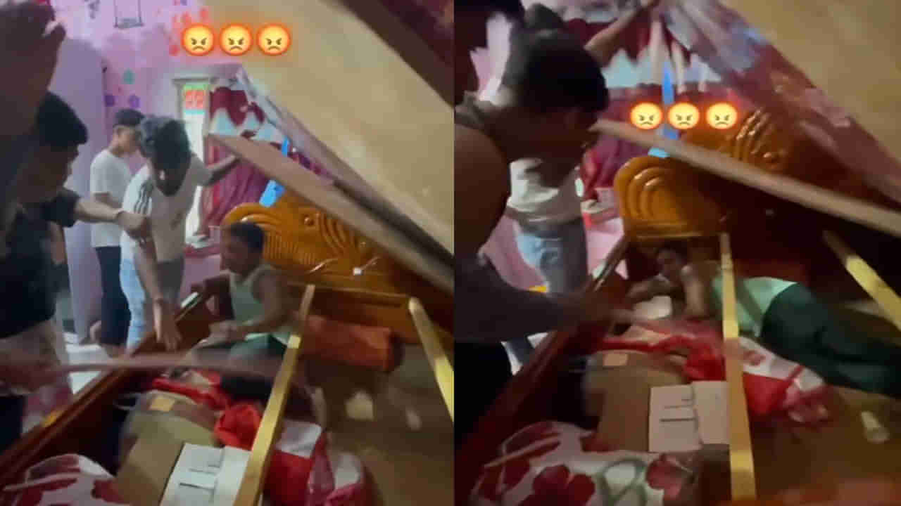 వీడియోలోని విజువల్స్ ప్రకారం కొందరు వ్యక్తులు చేతిలో కర్రలు పట్టుకుని హడావుడిగా ఓ ఇంట్లోకి పరిగెత్తారు. పాము కోసం వెతుకుతున్నట్లుగా ఇంట్లో అన్ని దిక్కులూ వెతికారు. ఆ తర్వాత అనుమానంతో మంచం కింద వెతికేందుకు వెళ్లారు. ఓ వ్యక్తి పరుపు కింద పాము దూరిందని అనుమానించి పరుపును పైకి ఎత్తుతారు. చివరకు పరుపు తీసి చూడగా.. దాని కింద షాకింగ్ సీన్ కనిపించింది.