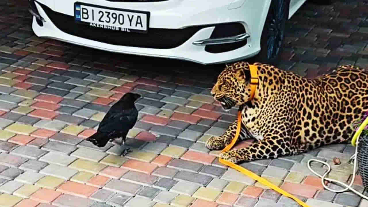 సోషల్ మీడియాలో ఒక షాకింగ్ వీడియో వైరల్ అవుతోంది, అందులో ఒక చిన్న కాకి ధైర్యం ముందు క్రూర జంతువు తోక ముడిచింది. కాకి ముందు మచ్చలు గల చిరుత పులి మోకరిల్లుతున్నట్లు కనిపిస్తుంది. ఈ దృశ్యం నిజంగా దిగ్భ్రాంతిని కలిగిస్తుంది. నెటిజన్లు ఇప్పుడు కాకి ధైర్యాన్ని ప్రశంసిస్తున్నారు. వైరల్ వీడియోలో పెంపుడు కుక్కను కట్టివేసినట్లుగా ఇంటి వెలుపల ఒక పట్టీకి కట్టి కూర్చున్న పెంపుడు చిరుత పులిని చూడవచ్చు. అదే సమయంలో సమీపంలో ఒక కాకి కూడా ఉంది. అది చిరుతపులితో గొడవ చేయడానికి ధైర్యం చేస్తున్నట్లుగా కనిపిస్తుంది.