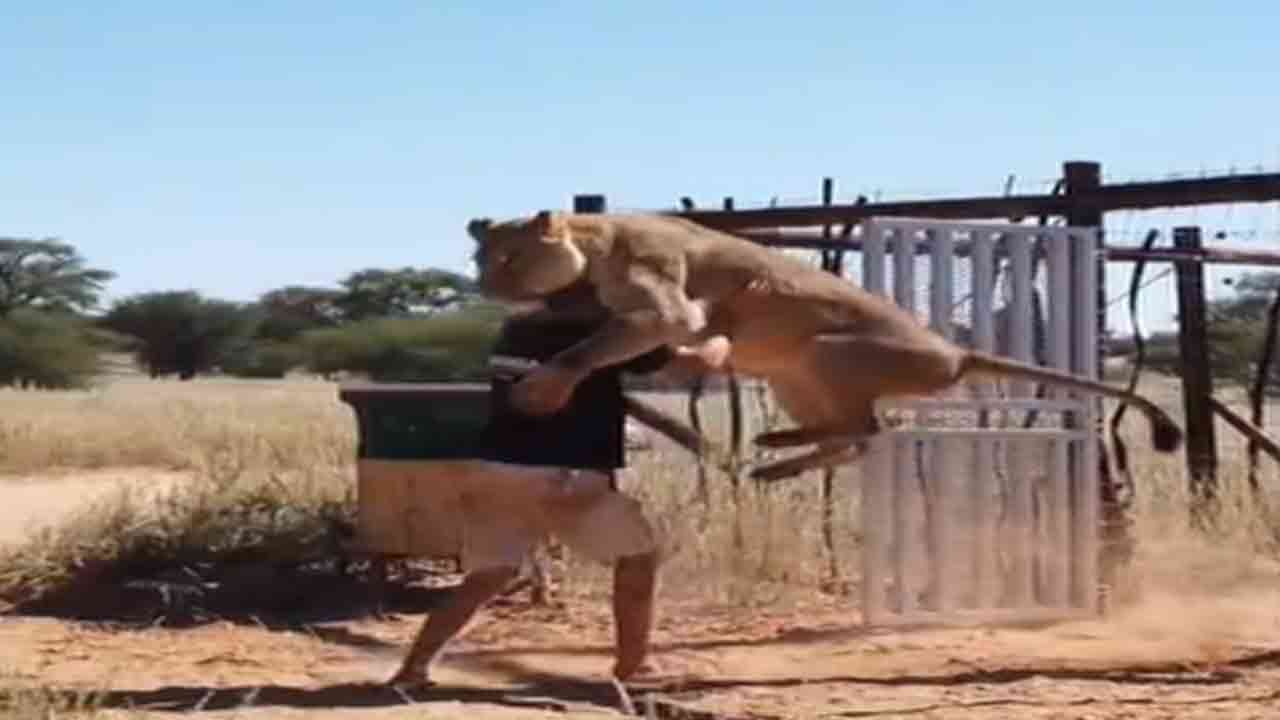 Viral Video: గేటు తీయగానే మీద దూకెసిన సింహం.. అప్పుడతను ఏం చేశాడంటే..