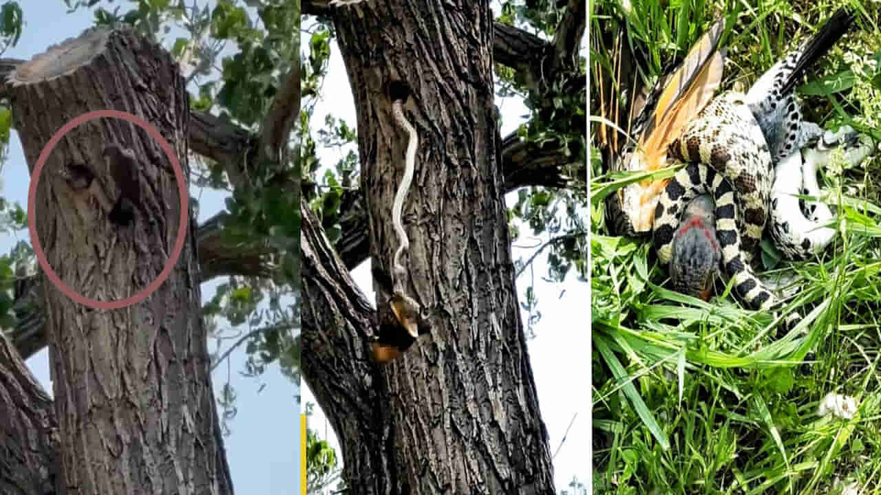 వీడియోలో ఒక పాము పక్షి గూటిలోకి ప్రవేశించి అందులో ఉన్న పక్షి గుడ్లను తినాలని ప్రయత్నం చేస్తుంది.. అక్కడికి వచ్చిన తల్లి పక్షికి పాము చేస్తున్న పని అర్ధం అయింది. తన పిల్లలను కాపాడుకోవడానికి పాముని గూటి నుంచి బయటకు రప్పించే ప్రయత్నం చేసింది. పాముతో పక్షి పోరాడింది. అంతేకాదు పాము తన పిల్లవైపు చూడానికి కూడా లేకుండా చేసింది. అయితే పాము పక్షిపై దాడి చేయడంతో చెట్టు నుంచి పాముతో పాటు పక్షి కిందకు పడ్డాయి. పాము కరవడంతో పాటు పక్షిని చుట్టి ఊపిరి ఆడకుండా చుట్టేసి చంపేసింది. అయితే ఆ పక్షి తాను మరణిస్తూ కూడా తన గుడ్లను కాపాడుకుంది.