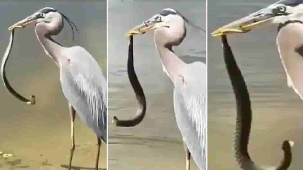 Crane – Snake Shocking Video: సోషల్ మీడియా ప్రపంచంలో నిత్యం ఎన్నో వీడియోలు వైరల్ అవుతుంటాయి. వాటిలో ఎక్కువగా జంతువులకు సంబంధించినవే ఉంటాయి. వైరల్ అయ్యే వీడియోల్లో కొన్ని ఫన్నీగా.. మరికొన్ని ఆశ్చర్యకరంగా ఉంటాయి. సాధారణంగా.. అటవీ ప్రపంచంలో జీవించేందుకు.. చిన్న జీవులను పెద్ద జీవులు.. వాటిని క్రూర మృగాలు వేటాడుతుంటాయి. వేటాడకపోతే.. అవి ఆకలితో చనిపోతాయి. అందుకే.. చీమల నుంచి సింహం వరకు అన్ని వేటనే నమ్ముకుంటాయి. అయితే పామును పక్షిని వేటాడడం ఎప్పుడైనా చూశారా?.. పక్షులు ఆకాశంలో నుంచే తమ ఎరను నిర్ణయించుకొని.. వాటిపై దాడులు చేస్తాయి. అయితే.. పాము.. పక్షి వేటలో ఎవరిది పై చేయి అవుతుందో కచ్చితంగా చెప్పలేం. తాజాగా.. అలాంటి వీడియో ఒకటి సోషల్ మీడియాలో వైరల్ అవుతోంది. ఒక పక్షి పామును తన ఆహారంగా మార్చుకుంది. దీనిని చూసి నెటిజన్లు తెగ ఆశ్చర్యపోతున్నారు.