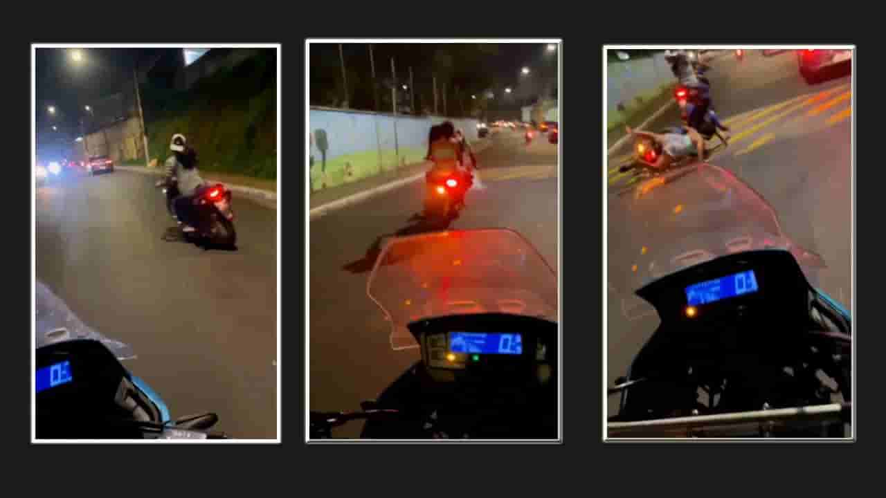 ఈ వీడియోలో ఓ అమ్మాయి రోడ్డుపై బైక్ నడుపుతూ స్టంట్స్ చేస్తోంది. ఇంతలో ఆమె వెనుకాలే వచ్చిన బైక్ను ఢీకొట్టింది. దాంతో ఆ బైక్పై ప్రయాణిస్తున్న బైక్ రైడర్ అబ్బాయి, ఇద్దరు అమ్మాయిలు రోడ్డుపై పడిపోయారు. ఈ ఘటన అంతా వెనుక నుంచి వస్తున్న బైకర్ హెల్మెట్కు అమర్చిన కెమెరాలో రికార్డయింది. ఈ వీడియోను సోషల్ మీడియా ప్లాట్ఫామ్ ఇన్స్టాగ్రమ్లో పోస్ట్ చేయగా.. అదికాస్తా వైరల్ అయ్యింది. నెటిజన్లు ఓ రేంజ్లో కామెంట్స్ చేస్తున్నారు. ‘అమ్మా తల్లీ జర చూసుకోమ్మా’ అంటూ పంచ్లు వేస్తున్నారు. ఈ వీడియోను చూస్తే మీ మైండ్ బ్లాంక్ అవడం ఖాయం.