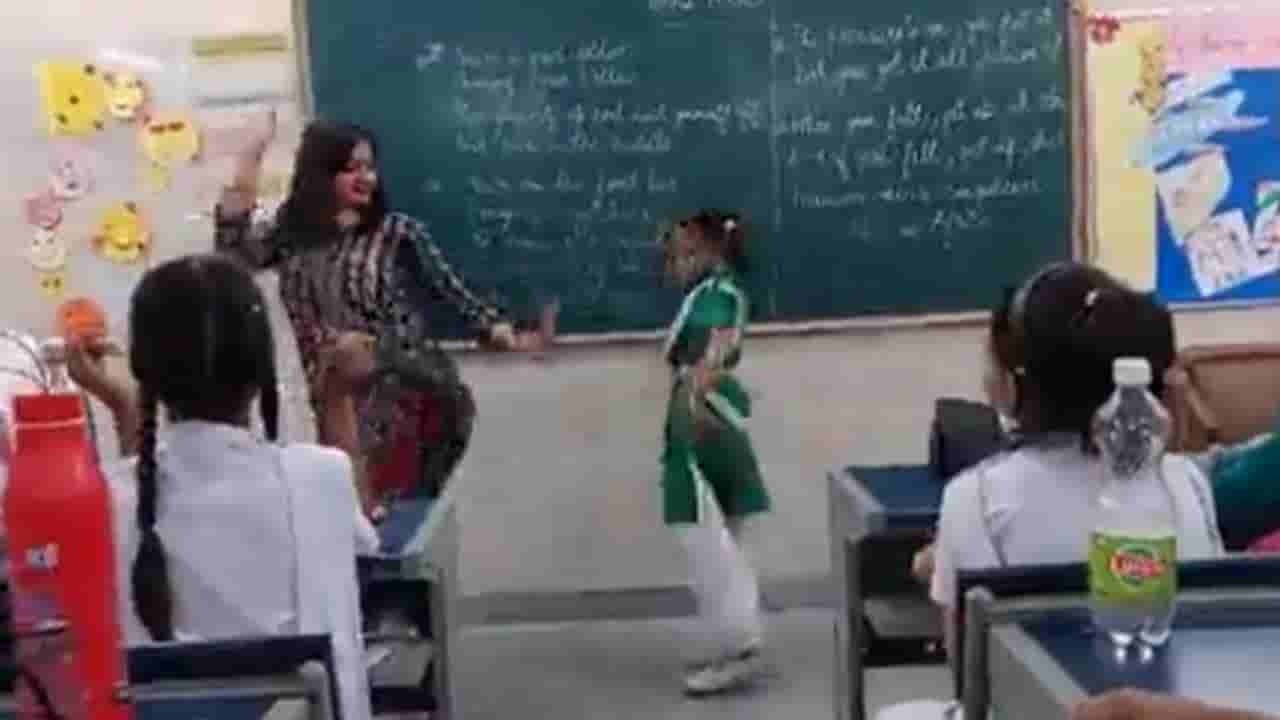 ఇంగ్లీష్ టీచర్ క్లాస్లో హర్యాన్వీ పాటకు తన విద్యార్థినితో కలిసి డ్యాన్స్ చేస్తున్నారు. తోటి విద్యార్థులు తమ సీట్ల నుండి లేచి మరీ టీచర్ ని , స్టూడెంట్ ను డ్యాన్స్ చేయమంటూ ఉత్సాహపరిచారు. అమ్మాయి స్టెప్స్ వేస్తూ.. తన మేడమ్ని తనతో డ్యాన్స్ చేరమని కోరింది. దీంతో మను టీచర్ స్టూడెంట్ వేసిన స్టెప్పులను అనుసరిస్తూ.. విద్యార్థినీతో నృత్యం చేసింది.