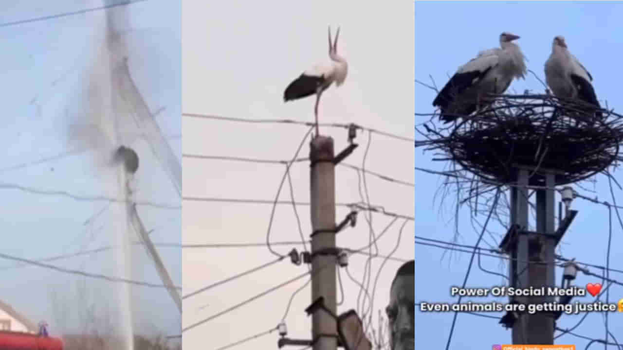 @official_hindu_sangathan1 ఇన్స్టాగ్రామ్ పేజీలో షేర్ చేసిన ఈ వైరల్ వీడియోలో లైన్మెన్ విద్యుత్ స్తంభంపై కొత్త గూడును నిర్మించడాన్ని చూడవచ్చు. అంతేకాదు అందమైన జంట పక్షులు మనకు గూడు లభించింది. అనే ఆనందంలో గూడు లోపల ప్రశాంతంగా కూర్చున్నాయి. ఈ జంట పక్షులు కూడా వైరల్ వీడియోలో కనిపిస్తూ కనుల విందు చేస్తున్నాయి.