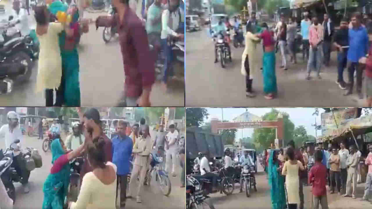 ఉత్తర ప్రదేశ్లో గురువారం చోటుచేసుకుంన్న ఈ సంఘటనకు సంబంధించిన వీడియో సోషల్ మీడియాలో వైరల్ అవుతోంది. కాన్పూర్కు చెందిన ఓ వ్యక్తి అదే ప్రాంతానికి చెందిన యువతితో గత కొంతకాలంగా వివాహేతర సంబంధం పెట్టుకున్నాడు. ఈ విషయం అతడి భార్య చెవిన పడటంతో కుటుంబంలో తగాదాలు మొదలయ్యాయి. ఈ నేపథ్యంలో గురువారం ఆ వ్యక్తి తన ప్రియురాలితో నర్వాల్ మోద్ ఏరియాలో భార్య కంటపడ్డాడు. వెంటనే భర్తను నిలదీసింది. ఈ క్రమంలో భార్య, ప్రియురాలు నడి రోడ్డు మీదే జుట్లు పట్టుకుని కొట్టుకున్నారు. కొద్దిసేపటి తర్వాత భార్యకు సర్దిచెప్పి ఇంటికి పంపడంతో గొడవ సరద్దుమణిగింది.