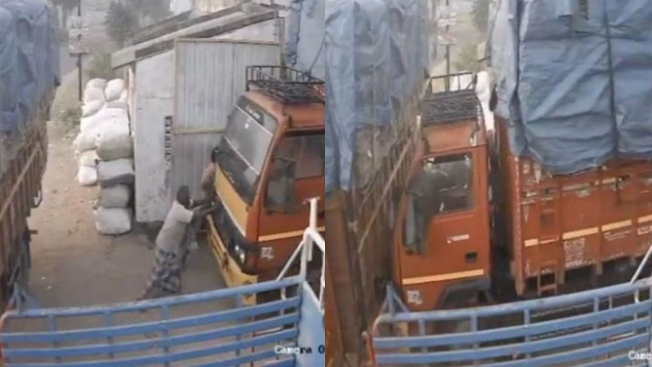 దృశ్యాల ప్రకారం, కొంచెం వాలుపై ఆపి ఉంచబడిన లారీ, సాధారణ కార్యకలాపాల సమయంలో వెనుకకు దొర్లడం ప్రారంభించింది. నష్టాన్ని నివారించడానికి తీవ్రంగా ప్రయత్నించి, కార్మికుడు వాహనం వెనుక నిలబడ్డాడు. కానీ లారీ వేగం పుంజుకుని అతన్ని ఆపి ఉంచిన మరొక ట్రక్కు మధ్య ఇరుక్కుంది. సహోద్యోగులు సహాయం చేయడానికి పరుగెత్తినప్పటికీ, అతను అక్కడికక్కడే మరణించాడు.