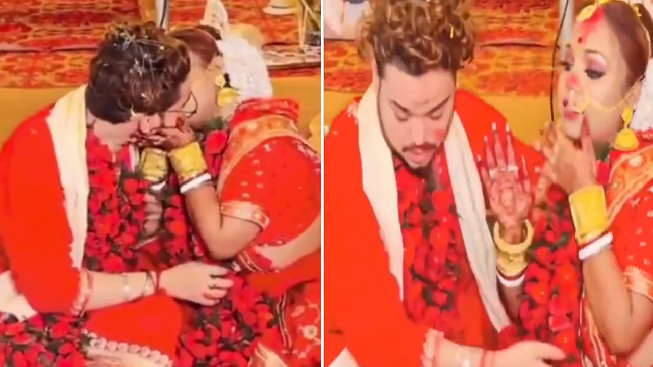 బెంగాలీ వివాహ వేడుకలో ఈ ఘటన జరిగింది. కుటుంబ సభ్యులు, అతిథుల ముందు వివాహ వేడుక సందర్భంగా చిత్రీకరించబడిన 35 సెకన్ల ఈ వైరల్ క్లిప్లో.. వధూవరులు వేదికపై సన్నిహితంగా ముద్దు పెట్టుకుంటున్నట్లు చూపిస్తుంది. అందరిముందు వధూవరులు ఒకరినొకరు ముద్దు పెట్టుకోవడం ఆన్లైన్లో తీవ్ర చర్చకు దారితీసింది. సాంప్రదాయ వేడుకలో ఇలాంటివి తగదని.. వివాహాల సమయంలో ఇవేం పనులు అంటూ ఆగ్రహం వ్యక్తంచేస్తున్నారు. బహిరంగ ప్రేమాభిమానాలు సముచితమేనని.. కానీ.. హద్దులు దాటకూడదని.. పేర్కొంటున్నారు.