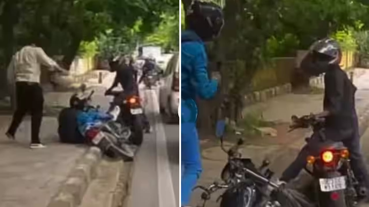 Road-rage kalesh b/w bikers and a guy with rapido rider, who’s at fault? pic.twitter.com/ydgMVOENWQ