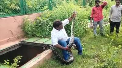 సరీసృపాలలో కొండచిలువ చాలా పెద్దది, దూడ నుంచి మనిషి వరకు అన్నింటిని అమాంతం మింగేస్తాయి ఈ కొండచిలువలు. ఇక ఇండియన్ రాక్ పైథాన్ అని పిలిచే ఈ కొండచిలువ బరువు 22 కిలోల వరకు ఉంటుంది. ప్రస్తుతం దీనికి సంబంధించిన వీడియో ఒకటి వైరల్గా మారింది.