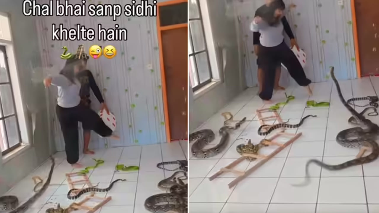 స్నేక్ అండ్ లాడర్ గేమ్.. దీనినే తెలుగులో వైకుంఠ పాళీ అని కొందరు కైలాసం అని కూడా పిలుస్తారు. దాదాపుగా ఈ గేమ్ అందరికీ తెలిసే ఉంటుంది. ఎందుకంటే.. గత కరోనా కాలంలో చాలా మంది ఇలాంటి ఆటలతోనే టైమ్ పాస్ చేశారు. ప్రస్తుతం సోషల్ మీడియాలో ఒక షాకింగ్ వీడియో వైరల్ అవుతోంది. ఈ వీడియో చాలా ఆసక్తికరంగా, షాకింగ్గా ఉంది. ఈ వీడియోలో ఒక మహిళ తన రూమ్ నిండా ప్రమాదకరమైన పాములతో స్నేక్ అండ్ లాడర్ గేమ్ ఆడుతోంది.