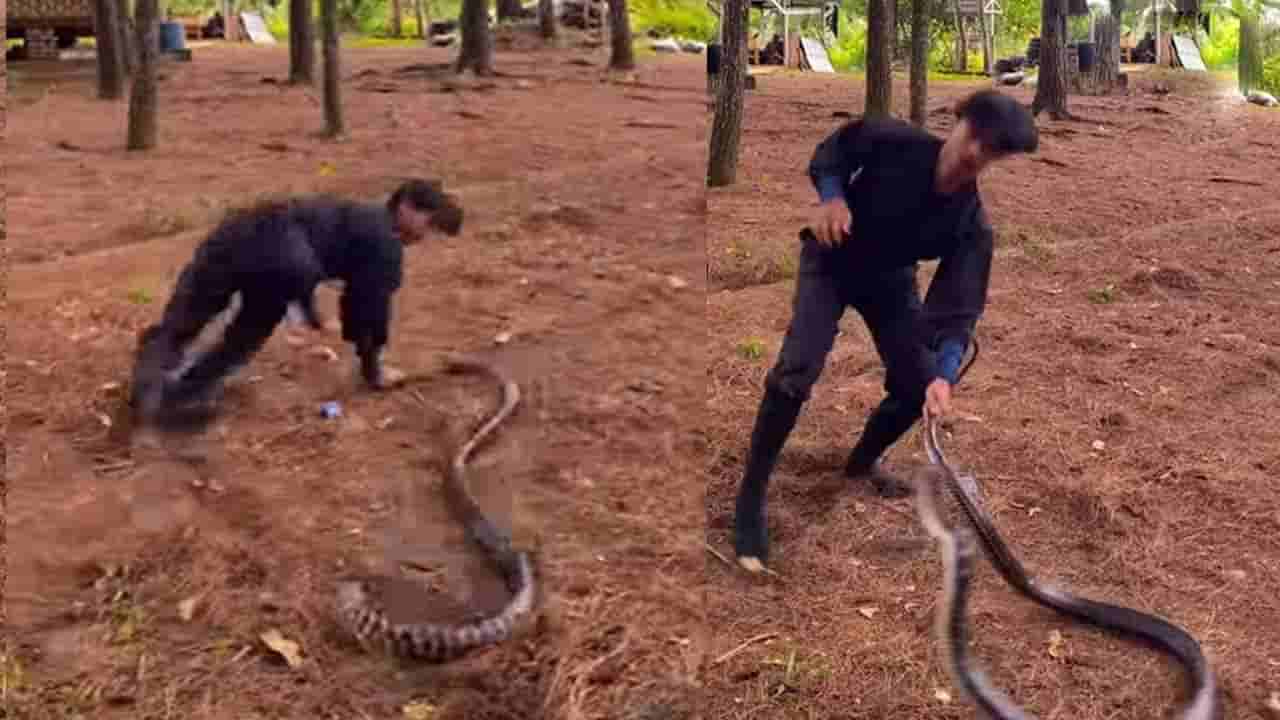 పాములు.. వాటి పేరు వింటేనే గుండెలు జారిపోతాయి. ధైర్యవంతులకు సైతం చెమటలు పడతాయి. ఒకవేళ ఒక వ్యక్తి అదే పామును తాడులా తిప్పితే ఎలా ఉంటుంది? సోషల్ మీడియాలో వైరల్ అవుతున్న ఒక వీడియో నెటిజన్లను దిగ్భ్రాంతికి గురిచేస్తోంది. ఆ వీడియోలో, ఒక వ్యక్తి పొడవాటి పామును దాని తోక పట్టుకుని ప్రమాదకరంగా గిరగిరా తిప్పుతుండగా, ఆ పాము పదేపదే అతనిపైకి దూసుకొచ్చి కాటు వేయడానికి ప్రయత్నించింది. ఈ దృశ్యం ఎంత భయానకంగా ఉందంటే, చూస్తున్న వారికి ఊపిరి ఆగిపోయినంత పనైంది.