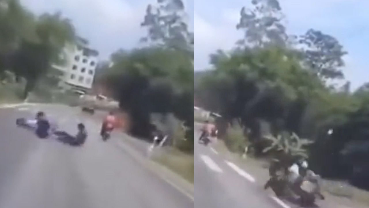అందులో ముగ్గురు యువకులు ద్విచక్రవాహనం పై అత్యంత ప్రమాదకరంగా విన్యాసాం చేస్తూ వెళ్తు్న్నారు. అయితే ఉన్నట్టుండి రైడర్ స్టంట్ చేయడానికి ప్రయత్నించడంతో వారి బైక్ స్కిడ్ అయి రోడ్డుపై పడిపోయారు. బైక్ పై నుంచి పడిన వెంటనే ఇతర వాహనాలు ఢీకొట్టకుండా ఉండేందుకు వెంటనే లేచి పక్కకు పరిగెత్తారు.ఈ క్రమంలో ఇద్దరు రోడ్డు పక్కకు పరిగెత్తుతుండా 9 సెకన్ల వ్యవధిలో అందులో ఓ యువకుడిని మరో బైక్ ఢీకొట్టడంతో అతను ఎగిరిపడ్డాడు. ప్రస్తుతం ఈ వీడియో సోషల్ మీడియాలో తెగ వైరల్ అవుతుంది.
