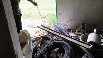 అనకాపల్లి జిల్లాలో మరో భారీ గిరినాగు తీవ్ర కలకలం సృష్టించింది. ఒకటి కాదు రెండు కాదు ఏకంగా 13 అడుగుల కింగ్ కోబ్రా హడలెత్తించింది. విమాడుగుల శివారులోని పొలాల్లో కింగ్ కోబ్రా హడాలెత్తించింది. ఓ రైతు పొలాల్లోని మోటార్ రూమ్లో.. కింగ్ కోబ్రా కనిపించింది. చెక్క పెట్టెలో తిష్ట వేసి శబ్దాలు చేస్తోంది. ఏమిటా అని ఆరా తీసేసరికి.. వడగ విప్పి నిటారుగా నిల్చుంది. దీంతో ఆ కుటుంబం గుండెలు పట్టుకుని పరుగులు తీసింది. ఆ తర్వాత విషయాన్ని అటవీ శాఖ అధికారులు, వన్యప్రాణి సంరక్షకుడికి సమాచారం ఇచ్చారు. రంగంలోకి దిగిన వన్యప్రాణి సంరక్షకుడు వెంకట్ పామును బంధించేందుకు సిద్ధమయ్యాడు. పెట్టెలో దాక్కున్న కింగ్ కోబ్రాను పట్టుకునేందుకు తీవ్రంగా శ్రమించాడు. చివరకు గంటపాటు శ్రమించి కింగ్ కోబ్రాను పట్టుకున్నారు. దీంతో అంతా ఊపిరి పీల్చుకున్నారు. ఆ తర్వాత పట్టుకున్న కింగ్ కోబ్రాను అడవుల్లో విడిచిపెట్టారు.