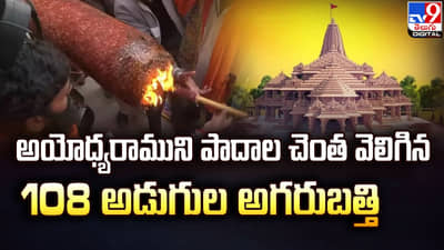 అయోధ్యరాముని పాదాల చెంత వెలిగిన 108 అడుగుల అగరుబత్తి