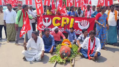 దేశంలో వంటగ్యాస్ ధరల పెండాన్ని నిరసిస్తూ కర్నూలు జిల్లా ఎమ్మిగనూరులో సీపీఐ ఆధ్వర్యంలో వినూత్న నిరసన చేపట్టారు. గ్యాస్ సిలిండర్కు పాడే కట్టి నగంలో శవయాత్ర నిర్వహించారు. పెంచిన గ్యాస్ ధరలు తగ్గించకపోతే రాబోయే రోజుల్లో బీజేపీ ప్రభుత్వానికి కూడా పాడేకడతామని హెచ్చరించారు.