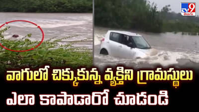 వాగులో చిక్కుకున్న వ్యక్తిని గ్రామస్థులు ఎలా కాపాడారో చూడండి