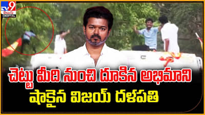 చెట్టు మీది నుంచి దూకిన అభిమాని.. షాకైన విజయ్ దళపతి