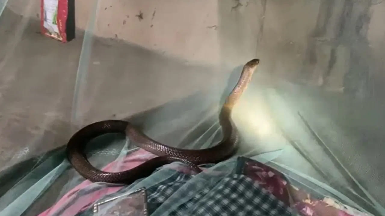 దోమతెరలోకి ప్రవేశించిన నాగుపాము..
