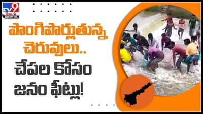 అల్పపీడనం కారణంగా ఏపీ వ్యాప్తంగా కురుస్తున్న భారీ వర్షాలతో చెరువులు, వాగులు పొంగి పొర్లుతున్నాయి. చిత్తూరు జిల్లా వ్యాప్తంగా ఎడతెరిపి లేని వర్షాలకు చెరువులకు వరద పోటెత్తుతోంది. పలు ప్రాంతాలు జల గిగ్బంధంలో చిక్కుకున్నాయి. అనేక చోట్ల రాకపోకలు నిలిచిపోయాయి.ఈ క్రమంలో వరద పొంగి పొరలు తున్న చెరువు వద్ద జనం చేపలకోసం ఎగబడుతున్నారు. ఓ వైపు వరద ఉధృతంగా ప్రవహిస్తున్నా లెక్క చేయకుండా చేపలకోసం పీట్లు చేస్తున్నారు. చిత్తూరు జిల్లా వడమాల పేట మండలం ఎస్బీఆర్ పురంలోని గులూరు చెరువు వరద పోటెత్తడంతో పొంగి ప్రవహిస్తోంది. దాంతో ఈ వరదలో కొట్టుకొస్తున్న చేపల కోసం జనం ఒక్కసారిగా ఎగబడ్డారు. చేపలను పట్టేందుకు కుస్తీలు పడుతున్నారు.