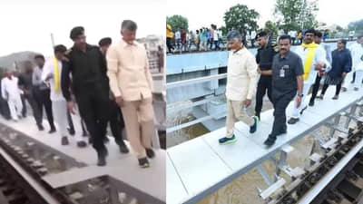 ఆంధ్రప్రదేశ్ ముఖ్యమంత్రి చంద్రబాబు నాయుడు ముద్రా నగర్ రైల్వే ట్రాక్పై నడుచుకుంటూ వెళ్తుండగా.. అదే ట్రాక్పైకి ఒక్కసారిగా ట్రైన్ దూసుకువచ్చింది. అక్కడే ఉన్న రైల్వే సిబ్బంది.. రైలును ఆపమని సూచించేందుకు ఎర్ర జెండాను ఊపారు. చంద్రబాబు అక్కడ ఇరుకైన బ్రిడ్జిపై నిల్చుని ఉండగా.. ట్రైన్ కాస్త స్లో అయ్యి ముందుకెళ్లింది.