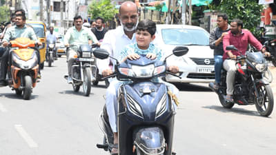 కరీంనగర్ ఎంపీ అభ్యర్థి బండి సంజయ్ మేనల్లుడితో సరదాగా రోడ్లపై షాకారు చేశారు. నిన్న మొన్నటి వరకు పార్లమెంట్ ఎన్నికల ప్రచారంలో భాగంగా ప్రత్యర్థులపై ఫైర్ అయిన సంజయ్ మే 13న పోలింగ్ ముగియడంతో రిలాక్స్ మూడ్ లోకి వెళ్లిపోయారు. పైగా ఎన్నికల ఫలితాలు విడుదలకు దాదాపు 20 రోజులు ఉండటంతో కుటుంబ సభ్యులతో సరదాగా గడిపేందుకు ప్రయత్నిస్తున్నారు. ఫలితాలు జూన్ 4న విడుదలైన తరువాత తిరిగి తానే పార్లమెంట్ కు ఎంపిక అవుతానని ధీమాగా ఉన్నారు. అయితే ఈ గ్యాప్లో ఐస్ క్రీం పార్లర్స్ చుట్టూ బండ్లపై రయ్ రయ్ మంటూ తిరుగుతున్నారు బండి సంజయ్. తన మేనల్లుడు శ్రీనిక్ బాబుతో బండిపై ఎంచక్కా సరదాగా తిరుగుతూ కనిపించారు. ఎన్నికలకు ముందు ప్రచారంతో.. ఎన్నికలనంతరం ఇలా కనిపించి నగరవాసులకు ఆశ్చర్యానికి గురి చేస్తున్నారు. బండి సంజయ్ ను ఇలా చూసిన జనం ఆశ్చర్యానికి గురవుతున్నారు. ఈ వీడియో ఇప్పుడు సామాజిక మాధ్యమాల్లో వైరల్గా మరింది.