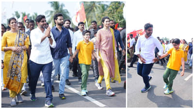 టీడీపీ జాతీయ ప్రధాన కార్యదర్శి నారా లోకేశ్ యువగళం పాదయాత్ర 3000 కిలో మీటర్ల మైలురాయిని పూర్తి చేసుకుంది. ఈ సందర్భంగా కాకినాడ జిల్లా తుని నియోజకవర్గం రాజుల కొత్తూరు వద్ద ఏర్పాటు చేసిన పైలాన్ను నారా లోకేష్ ఆవిష్కరించారు. ఈ కార్యక్రమంలో లోకేశ్ సతీమణి నారా బ్రాహ్మణి, తనయుడు దేవాన్ష్, బాలకృష్ణ తనయుడు మోక్షజ్ఞ కూడా పాల్గొన్నారు. ఈ సందర్భంగా లోకేశ్ పాదయాత్రలో ఆసక్తికర సన్నివేశం చోటుచేసుకుంది. తండ్రి లోకేశ్తో కలిసి దేవాన్ష్ పరుగులు పెడుతూ పార్టీ కార్యకర్తల్లో ఉత్సాహం నింపారు.