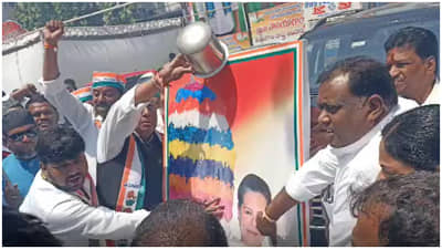 తెలంగాణ అవతరణ దశాబ్ధి ఉత్సవాలను కాంగ్రెస్ నేతలు రాష్ట్ర వ్యాప్తంగా ఘనంగా జరుపుకుంటున్నారు. జిల్లాల్లో ప్రత్యేక ర్యాలీలు, సభలు నిర్వహిస్తున్నారు. ఈ వేడుకల్లో భాగంగా హైదరాబాద్ గాంధీ భవన్లో సోనియా గాంధీ చిత్రపటానికి సీనియర్ నేత వీ హనుమంతరావు పాలాభిషేకం నిర్వహించారు. పలువురు పార్టీ నేతలు పాల్గొన్నారు. సోనియా గాంధీ జిందాబాద్ అంటూ నినాదాలు చేశారు. కాంగ్రెస్ పార్టీతోనే తెలంగాణ ప్రజల ప్రత్యేక రాష్ట్ర ఆకాంక్ష నెరవేరిందని ఆ పార్టీ నేతలు గుర్తుచేసుకున్నారు. సోనియా గాంధీ లేకపోతే తెలంగాణ ఆకాంక్ష నెరవేరేది కాదని స్వయంగా సీఎం కేసీఆర్ అసెంబ్లీ వేదికగా చెప్పారని గుర్తుచేశారు.