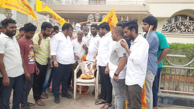 ఏపీలో మాజీమంత్రి అంబటి రాంబాబుకు తెలుగుదేశం పార్టీ నుంచి ఆందోళన సెగ తగిలింది. గుంటూరులోని ఆయన నివాసం వద్దకు చేరుకున్న తెలుగు యువత ఆందోళన చేపట్టింది. ఆయన ఇంటివైపు దూసుకెళ్లే ప్రయత్నం చేసిన తెలుగు యువత కార్యకర్తలను పోలీసులు అడ్డుకున్నారు. దీంతో కాస్త ఉద్రిక్త వాతావరణం చోటు చేసుకుంది. కొంతసేపు తెలుగుదేశం కార్యకర్తలకు పోలీసులకు మధ్య వాగ్వాదం చోటు చేసుకుంది. ఇలా ఇరువురి మధ్య వాగ్వాదం తరువాత ఆందోళనకారులు మాజీ మంత్రి అంబటి రాంబాబు చిత్రపటానికి బొట్టు పెట్టి చంద్రబాబు ముఖ్యమంత్రిగా ప్రమాణ స్వీకారం చేస్తున్న మహోత్సవానికి ఆహ్వానించారు. ఒక కుర్చీపై ఆయన చిత్రపటాన్ని ఉంచి.. పసుపు, కుంకుమ, చీర, గాజులు, పూలు అలంకరించి నానా హంగామా చేశారు. కాసేపటి తరువాత పరిస్థితి సర్థుమణిగింది. అయితే మొన్న జరిగిన సార్వత్రిక ఎన్నికల్లో అంబటి రాంబాబు సత్తెనపల్లి నియోజకవర్గంనుంచి వైఎస్ఆర్సీపీ తరఫున ఎమ్మెల్యే అభ్యర్థిగా బరిలో నిలిచి ఓటమిపాలయ్యారు. దీంతో రెచ్చిపోయిన యువత ఇలా వినూత్న కార్యక్రమానికి తెరలేపారు.