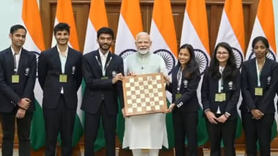 బుడాపెస్ట్లో జరిగిన 45వ చెస్ ఒలింపియాడ్లో భారత యువ చెస్ క్రీడాకారులు చారిత్రాత్మక విజయాలు అందుకున్న సంగతి తెలిసిందే. ఇక టోర్నమెంట్ అనంతరం స్వదేశానికి చేరుకున్న వారు.. బుధవారం ప్రధాని మోదీని తన నివాసంలో కలుసుకున్నారు. వారంతా కూడా బంగారు పతకాలను సాధించడం, భారత్ను గర్వపడేలా చేయడం తనకు సంతోషాన్ని ఇచ్చిందన్నారు ప్రధాని మోదీ. చెస్ ఛాంపియన్స్ను ఒక్కొక్కరిగా ప్రశంసించారు ఆయన. తొలిసారిగా చెస్లో పురుషులు, మహిళల జట్లు బంగారు పతకాలను కైవసం చేసుకున్నాయి. ఆదివారం పురుషుల జట్టు స్లోవేనియాను ఓడించి, మహిళల జట్టు ఆఖరి రౌండ్లో అజర్బైజాన్పై విజయం సాధించి, ప్రతిష్టాత్మక చెస్ ఈవెంట్లో తొలిసారిగా స్వర్ణ పతకాలను కైవసం చేసుకోవడంతో భారత్ చరిత్ర సృష్టించింది. పురుషుల పోటీలో గుకేశ్, అర్జున్ ఎరిగైసి, ఆర్ ప్రజ్ఞానానంద చివరి రౌండ్లో నిర్ణయాత్మక విజయాలు సాధించారు. మహిళల జట్టు అజర్బైజాన్ను ఓడించి స్వర్ణం ఖాయం చేసుకుంది. ఇక సోషల్ మీడియాలో వైరల్ అవుతున్న వీడియోలో ఆర్ వైశాలి, డి హారిక, తానియా సచ్దేవ్, విదిత్ గుజరాతీ, అర్జున్ ఎరిగైసి, ప్రగ్నానందతో సహా చెస్ ఛాంపియన్లతో ప్రధాని మోదీ ఇంటరాక్ట్ అయ్యారు.