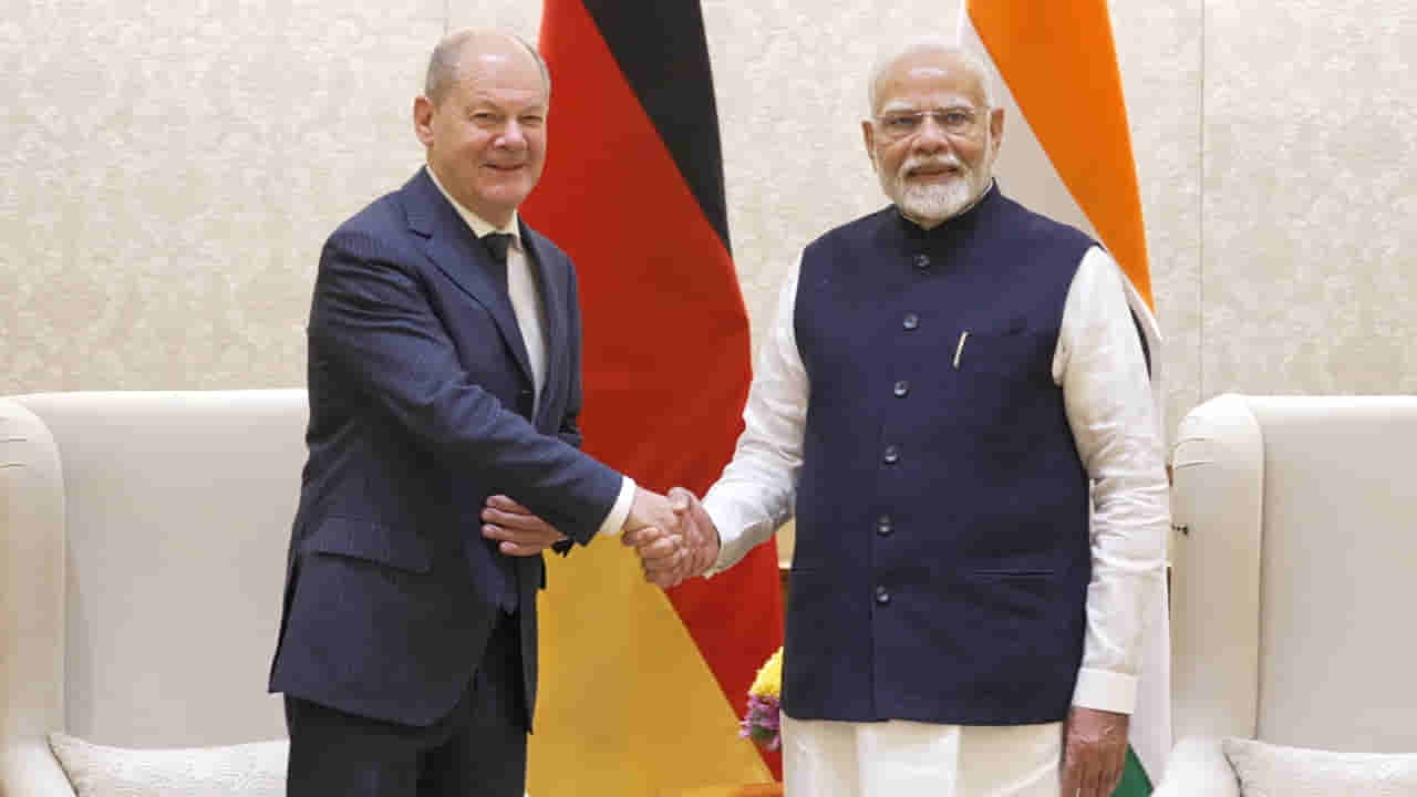 భారత ప్రధాని నరేంద్రమోదీతో జర్మన్ ఛాన్స్లర్ ఒలాఫ్ స్కోల్జ్ సమావేశమయ్యారు. పలు అంశాలపై చర్చించేందుకు గాను శుశ్రవారం వీరిద్దరూ సమావేశమయ్యారు. ఇందులో భాగంగానే ఇరు దేశాల మధ్య పలు ద్వైపాక్షిక సంబంధాలపై చర్చించనున్నారు. ముఖ్యంగా రక్షణ, వాణిజ్యం, స్వచ్ఛ ఇంధన రంగాలపై ఇరువురు నేతలు విస్తృత స్థాయిలో చర్చలు జరపున్నట్లు తెలుస్తోంది.