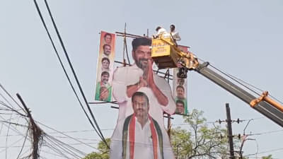 నల్లకుంటలో భారీ కటౌట్ను గ్రేటర్ హైదరాబాద్ యూత్ కాంగ్రెస్ నాయకులు సీఎం రేవంత్ రెడ్డికి కృతజ్ఞతలు తెలుపుతూ 40 ఫీట్ల భారీ కటౌట్కు ఏర్పాటు చేశారు. భారీ క్రేన్ సహాయంతో పాలాభిషేకం చేశారు.
