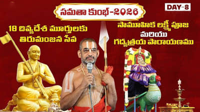 ముచ్చింతల్ శ్రీరామనగరంలో జరుగుతున్న సమతాకుంభ్ 2026 నాల్గవ బ్రహ్మోత్సవాలు ఆధ్యాత్మిక శోభను సంతరించుకున్నాయి. శ్రీ రామానుజాచార్యులు, 108 దివ్యదేశాల స్ఫూర్తితో సాగే ఈ ఉత్సవాలు భక్తులకు అనంతమైన ఆనందాన్ని ఇస్తున్నాయి. ఉదయం ఆరాధన, మంత్రజపం, నిత్య పూర్ణాహుతి, తీర్థప్రసాద గోష్టి, 18 దివ్యదేశ మూర్తులకు తిరుమంజన సేవలు పూర్తయ్యాయి. ప్రస్తుతం సామూహిక లక్ష్మీపూజ, గద్యత్రయ పారాయణం కొనసాగుతున్నాయి.
