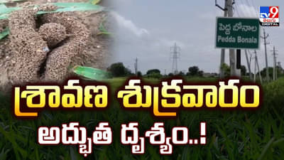 పాములను నాగదేవతగా కొలవడం హిందువుల సంప్రదాయం. అలాగే నాగుపాములు పరమశివునికి ఆభరణంగా ఉంటాయి. అయితే ఈ నాగేంద్రుడిని వెతుక్కుంటూ పరమశివుడు వచ్చాడా అన్నట్టుగా ఓ చీమల పుట్టపై శివలింగం ఆకారం ఏర్పడింది. ఈ అద్భుత ఘటన రాజన్న సిరిసిల్ల జిల్లాలో చోటుచేసుకుంది. శ్రావణ శుక్రవారం వేళ తెలంగాణలోని రాజన్న సిరిసిల్ల జిల్లాలో ఈ అద్భుత సంఘటన వెలుగు చూసింది. జిల్లాలోని పెద్దబోనాల పరిధిలో అరుదైన దృశ్యం అందరికీ కనువిందు చేసింది. శివలింగం ఆకారంలో చీమల పుట్ట ప్రత్యక్షమైంది. శివలింగాన్ని తలపిస్తున్న ఆ చీమల పుట్టను చూసి స్థానికులు ఆశ్చర్యపోయారు. సాధారణ చీమల పుట్టలకు ఇది భిన్నంగా.. శివలింగం ఆకారంలో ఉండటంతో దానిని చూసేందుకు ప్రజలు పెద్ద సంఖ్యలో వచ్చేశారు. గంటల వ్యవధిలోనే విషయం చుట్టు పక్కల గ్రామాలకు కూడా వ్యాపించింది. పెద్దబోనాల సమీప ప్రాంత ప్రజలు సైతం ఈ వింతను చూసేందుకు క్యూకట్టారు. కొందరు ఈ దృశ్యాన్ని వీడియో తీసి సోషల్ మీడియాలో పోస్ట్ చేయటంతో అది కాస్తా ఇప్పుడు నెట్టింట వైరల్గా మారింది.
