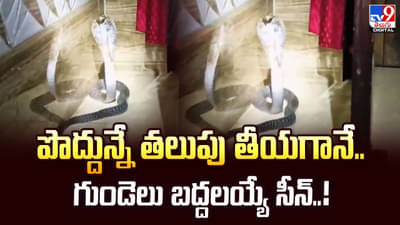 వర్షాకాలంలో జనావాసాల్లోకి పురుగూ పుట్రా చొచ్చుకుని వస్తుంటాయి. సాధారణంగా వరద సమయంలో పెద్ద పెద్ద పాములు కూడా నివాస ప్రాంతాల్లో కనిపించి జనాల్ని బెంబేలెత్తిస్తుంటాయి. తాజాగా అలాంటి వీడియో ఒకటి సోషల్ మీడియాలో వైరల్ అవుతోంది. ఉదయాన్నే తలుపు తీసిన యజమానికి వాకిలి ముందు.. బుసలు కొడుతున్న పెద్ద నాగుపాము కనిపించింది. దీంతో, ఆయన భయంతో వణికిపోతూ.. సాయం కోసం అరిచి కేకలు వేశాడు.