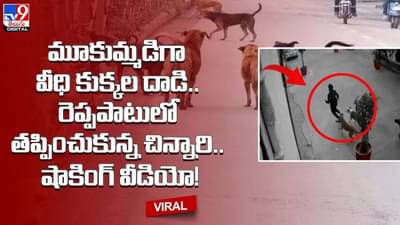 మూకుమ్మడిగా వీధి కుక్కల దాడి.. రెప్పపాటులో తప్పించుకున్న చిన్నారి.. షాకింగ్ వీడియో !!