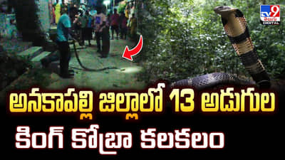 అనకాపల్లి జిల్లాలో మరో భారీ గిరినాగు బుసలు కొట్టింది. ఒకటి కాదు రెండు కాదు ఏకంగా 13 అడుగుల కింగ్ కోబ్రా హడలెత్తించింది. వి-మాడుగుల గణేష్ కాలనీలో కింగ్ కోబ్రా కలకలం సృష్టించింది. చీపురుపల్లి వెంకటేష్ అనే ఓ వ్యక్తి తన కుటుంబంతో కలిసి స్థానికంగా నివాసం ఉంటున్నాడు. చీకటిపడ్డాక బయట నుంచి ఇంటికి వస్తున్న సమయంలో పరిసరాల్లో ఏవో శబ్దాలు వినిపించాయి.