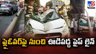 ఫ్లైఓవర్ప నుంచి వాహనదారులపై ఊడిపడ్డ పైప్ లైన్