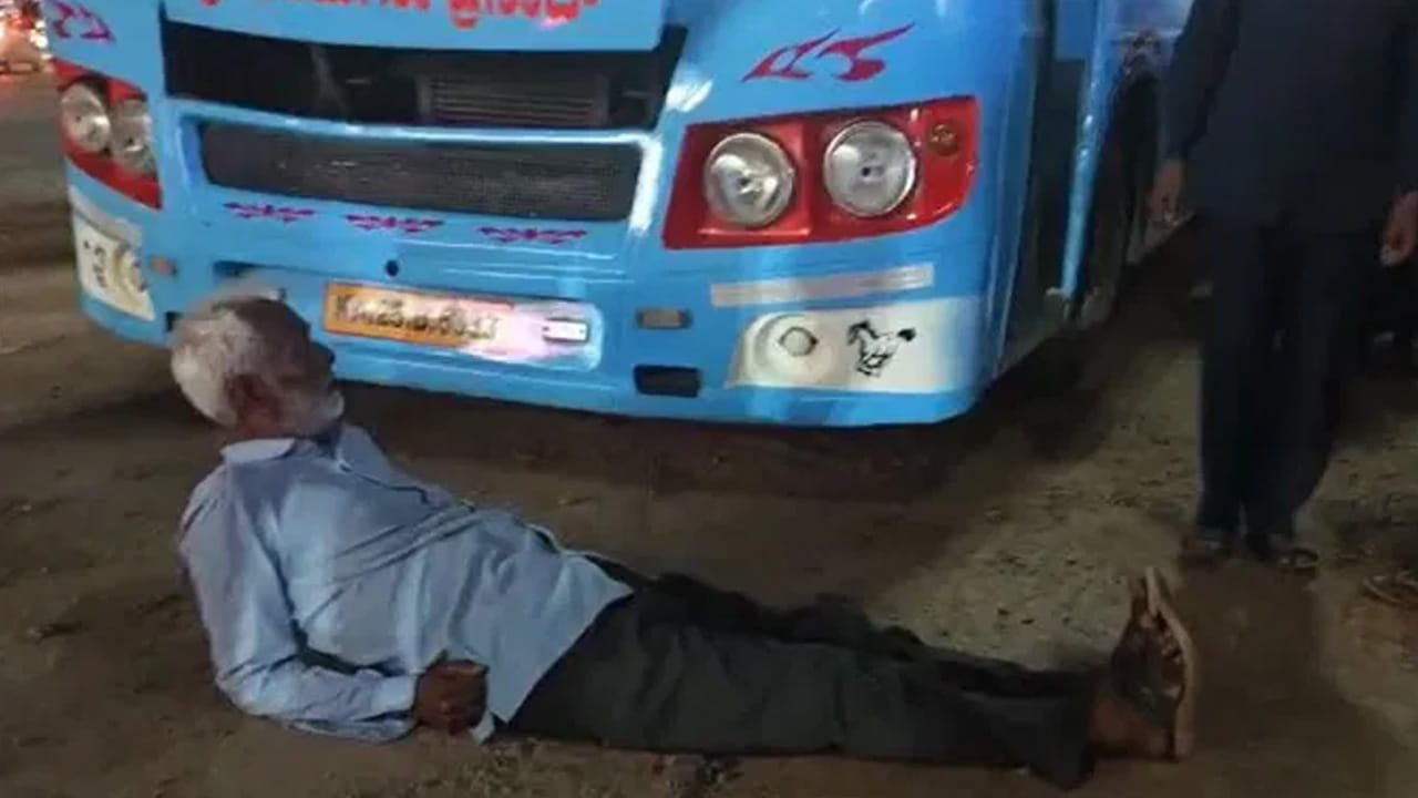 బస్సులో సీటు దొరకకపోవడంతో ఒక వృద్ధుడు ప్రైవేట్ బస్సు ముందు పడుకున్నాడు. బస్సు దిగిన డ్రైవర్ ఆ వృద్ధుడిపై ఆగ్రహం వ్యక్తం చేశాడు. అయినా కూడా ఆయన మాట వినకపోవడంతో.. ఇక చేసేందేం లేక.. బస్సులో ముందు సీటు ఆయనకు ఖాళీ చేసి ఇచ్చారు.