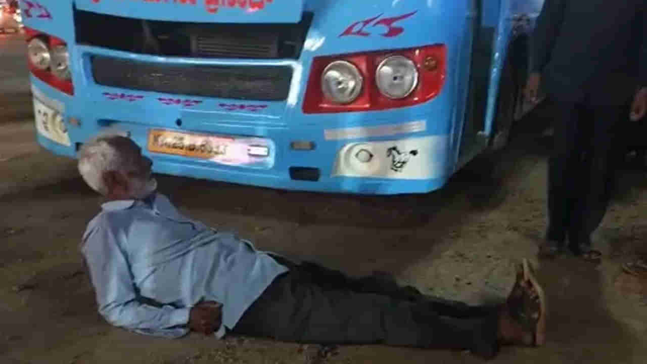 కర్ణాటకలోని హుబ్బళ్లి నగరంలోని చెన్నమ్మ సర్కిల్లో శుక్రవారం ఒక వింత సంఘటన జరిగింది. సీటు దొరకకపోవడంతో ఒక వృద్ధుడు ప్రైవేట్ బస్సు ముందు పడుకున్నాడు. బస్సు దిగిన డ్రైవర్ ఆ వృద్ధుడిపై ఆగ్రహం వ్యక్తం చేశాడు. అయినా కూడా ఆయన మాట వినకపోవడంతో.. ఇక చేసేందేం లేక.. బస్సులో ముందు సీటు ఆయనకు ఖాళీ చేసి ఇచ్చారు. దాంతో ఆయన వెళ్లి ఆ సీట్లో కూర్చుకున్నాడు.