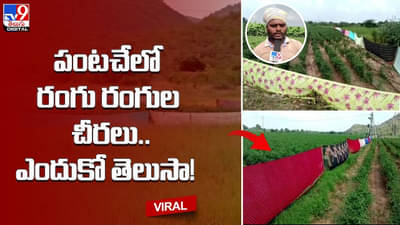 పంటచేలో రంగు రంగుల చీరలు.. ఎందుకో తెలుసా ??