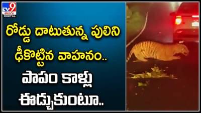 Tiger: రోడ్డు దాటుతున్న పులిని ఢీకొట్టిన వాహనం.. పాపం కాళ్లు ఈడ్చుకుంటూ.. వీడియో వైరల్.