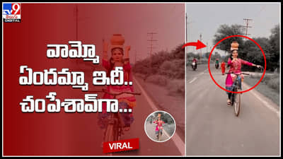 సైకిల్ హ్యాండిల్ కూడా పట్టుకోలేదు.. అలా భరతనాట్యం చేస్తూ తలపైన కుండనే కాదు సైకిల్ను కూడా ఎంతో చాకచక్యంగా బ్యాలెన్స్ చేస్తూ దూసుకెళ్లిపోతోంది.