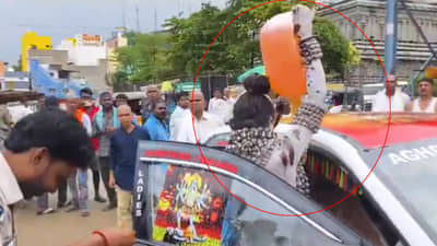 శ్రీకాళహస్తి ఆలయంలోకి ప్రవేశించాలని చూసిన అఘోరీని ఆలయ సెక్యూరిటీ అడ్డుకున్నారు. దీంతో అఘోరీ తన ఒంటిపై కిరోసిన్ పోసుకుని నిప్పంటించుకునే ప్రయత్నం చేసింది. వెంటనే స్పందించిన పోలీసులు ఆమెపై నీటిని పోశారు.