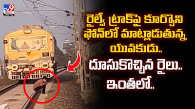 రైల్వే ట్రాక్పై కూర్చొని ఫోన్లో మాట్లాడుతున్న యువకుడు.. ఇంతలో.. వీడియో
