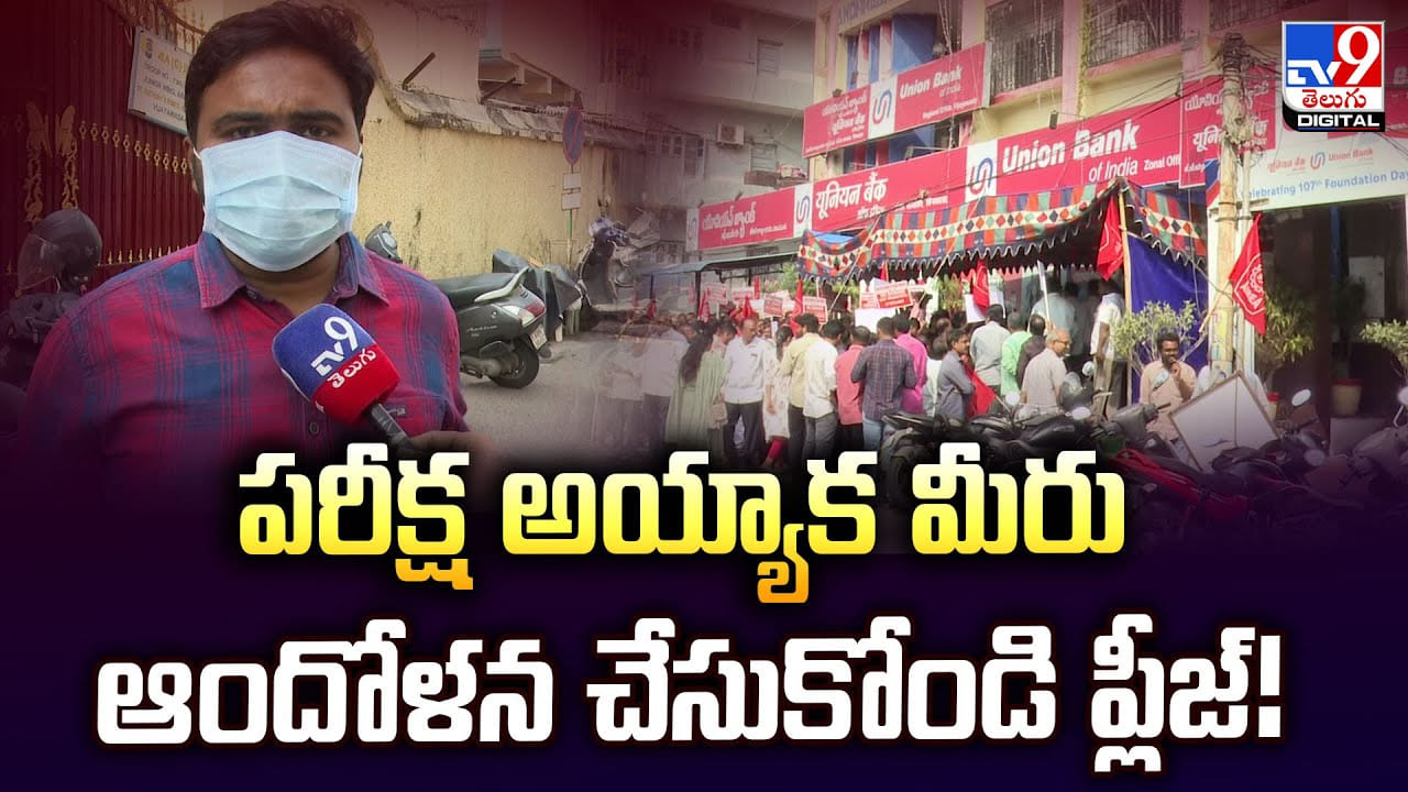 విజయవాడలో బ్యాంక్ ఉద్యోగుల దేశవ్యాప్త సమ్మె ఏపీపీఎస్సీ పరీక్షలకు ఆటంకం కలిగించింది. యూనియన్ బ్యాంక్ ఎదురుగా ఉన్న ఆర్సీఎం హైస్కూల్లో పరీక్ష రాస్తున్న విద్యార్థులకు నిరసన ప్రదర్శనల మైకు శబ్దాలు, నినాదాలతో తీవ్ర అసౌకర్యం ఏర్పడింది. తమ పిల్లల భవిష్యత్తుపై ప్రభావం చూపుతుందన్న ఆందోళనతో తల్లిదండ్రులు సమ్మెను నిలిపివేయాలని కోరారు.