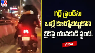 గర్ల్ ఫ్రెండ్ ను ఒళ్లో కూర్చోబెట్టుకొని బైక్ పై యువకుడి స్టంట్